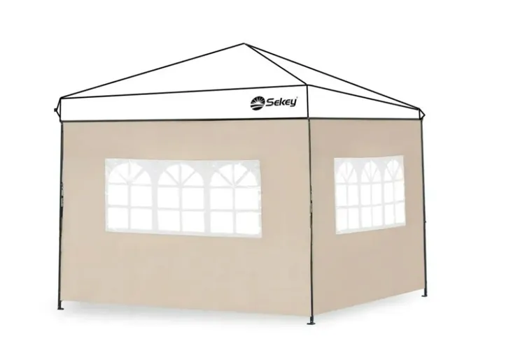 - Uniwersalne panele boczne: Cztery panele boczne , 2x z zamkami błyskawicznymi + 2x z oknem. Wymiary: 290 x 200 cm, pasuje do pawilonu składanego o szerokości 300 cm, 600 cm, 900 cm.